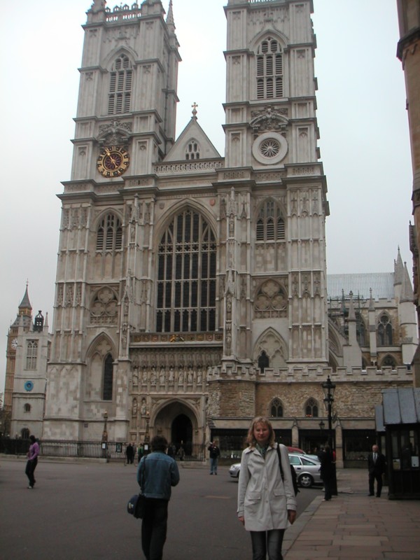 Летела я Люфтганзой из Штуттгарта в Хитроу. Рейс был в 6.45 утра, вставать пришлось в 4 часа. Самолет был маленький, я сидела у окна на самом последнем месте. Когда мы снижались, я увидела в окно знаменитый Tower Bridge, что привело меня в восторг. День был пасмурный, в аэропорту были лужи, но в этот день я под дождь не попала. Из аэропорта до гостиницы я добиралась на метро, у меня был проездной билет, который позволял мне свободно двигаться по всему Лондону и от и до Хитроу. Он окупился с лихвой. От метро я довольно быстро нашла гостиницу, которая была совсем неподалеку от станции Пимлико (как я потом прочитала в газете, на этой станции имеет квартиру дочка Камиллы). В гостинице я сначала оставила свой чемодан в специальной комнате для багажа, потому что я приехала рано утром и пока не могла занять комнату. Это гостиница для молодежи и студентов. Тогда я уселась за компьютер и написала письмо Гладунам и Роланду, что я хорошо добралась. Тогда я отправилась на прогулку. Первой целью у меня было Вестминстерское аббатство, до которого я дошла пешком, заплатила за вход 8 фунтов стерлингов (предварительно поменяв деньги в банкомате). Там была коронована Елизавета вторая (посередине стоит специальное кресло для коронации), проходили похороны Дианы и королевы-матери и там находятся гробницы множества королей и королев, например, Елизаветы 1, на которых находятся их лежачие статуи со сведенными, как в молитве, руками.