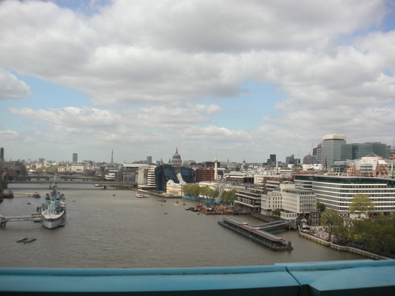 После Тауэра я сразу пошла к Тауэрскому мосту, там проходит выставка этого моста, где рассказывается, как его строили. Он был построен в конце 19 века. Я прошлась по нижней его части (для машин он был закрыт из-за ремонта) и с экскурсией по верхней, по застекленным коридорам по обе стороны моста, сфотографировала виды с обеих сторон. Там тоже показывали фильмы про историю моста. Нижняя часть его расходится, чтобы пропускать корабли.