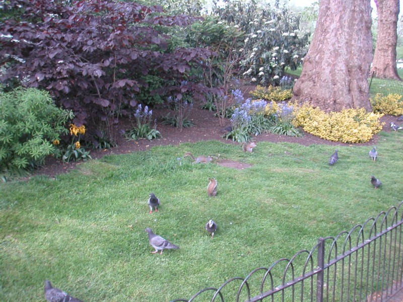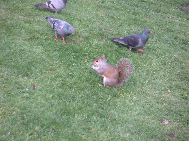 Когда я вылезла оттуда (а я не выдержала до конца и вылезла на ближайшей остановке по пути назад, это был опять Тауэр), добралась на метро до парка и уселась на скамейку есть свои несчастные суши, было уже 6 часов вечера, а это был мой обед. Никогда больше не буду покупать суши в супермаркете! Совсем не вкусные. И фруктовый салат тоже ничего особенного. Это был St.James’s парк,ближайший к моей гостинице и Букингем. Дворцу. Он мне понравился. Там были такие ручные белки, они прыгали по газонам и дорожкам и запрыгивали на руки кормящим их прохожим! Еще я там попила чаю.